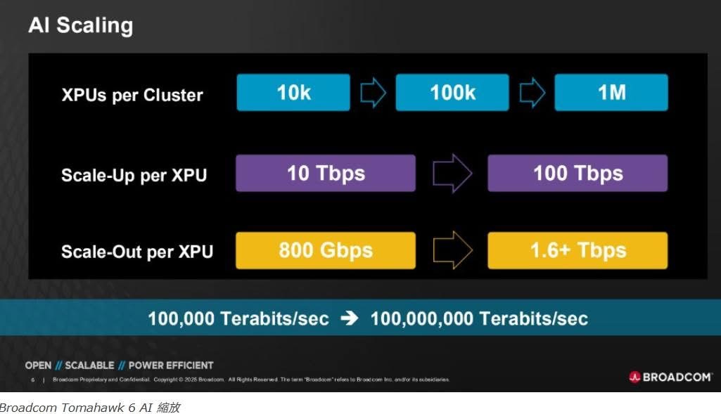 這是一個非常大膽的預測。長久以來,InfiniBand 以其超低延遲的特性,在高效能運算(HPC)與 AI 領域佔據主導地位。Broadcom 的信心來自於,如果 Ethernet 技術能夠在 Scale-up(向上擴展)的過程中,同樣保證低延遲,並且能支援極大規模的叢集,那麼憑藉其開放、普及的生態系優勢,確實非常有潛力主導市場。