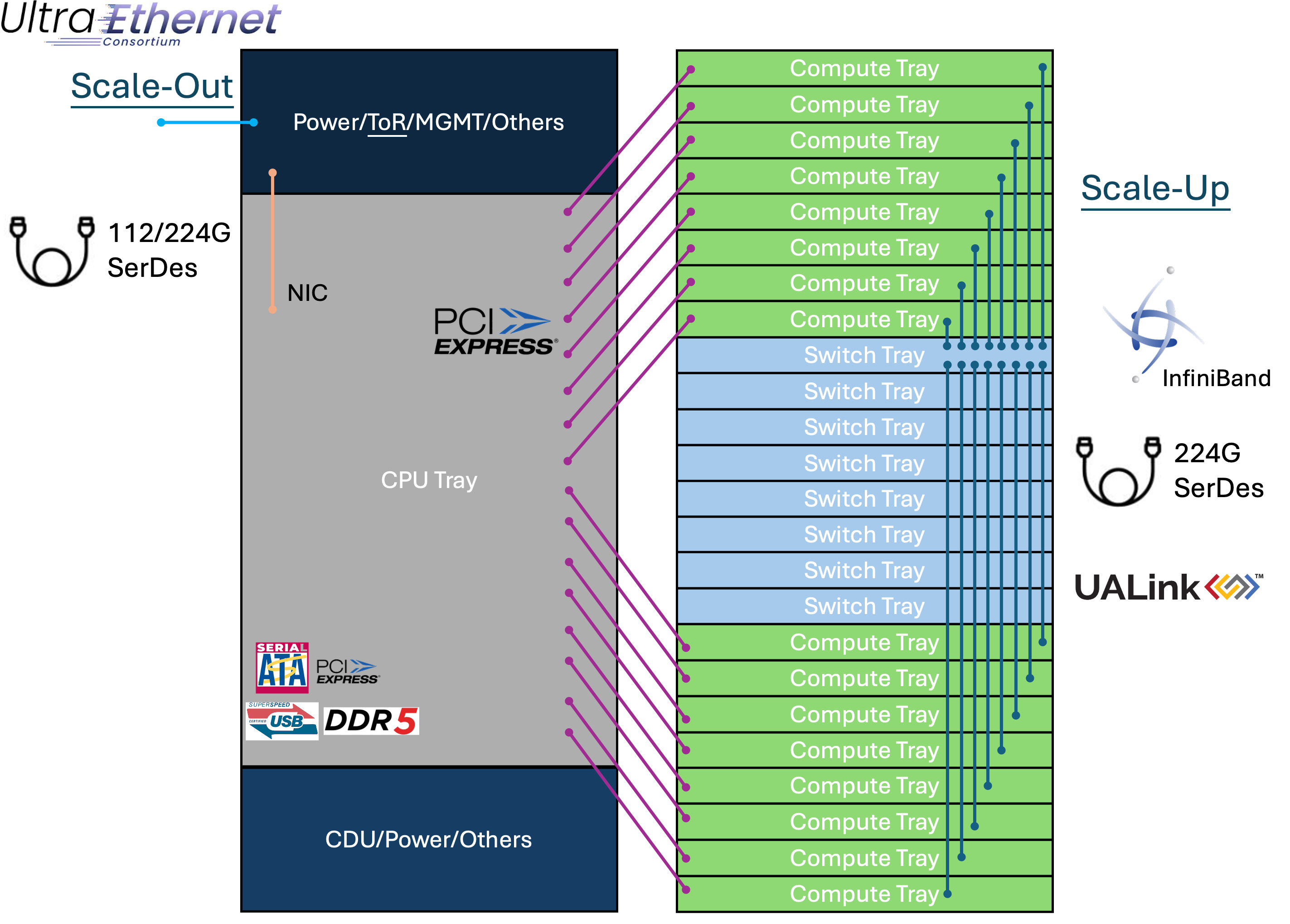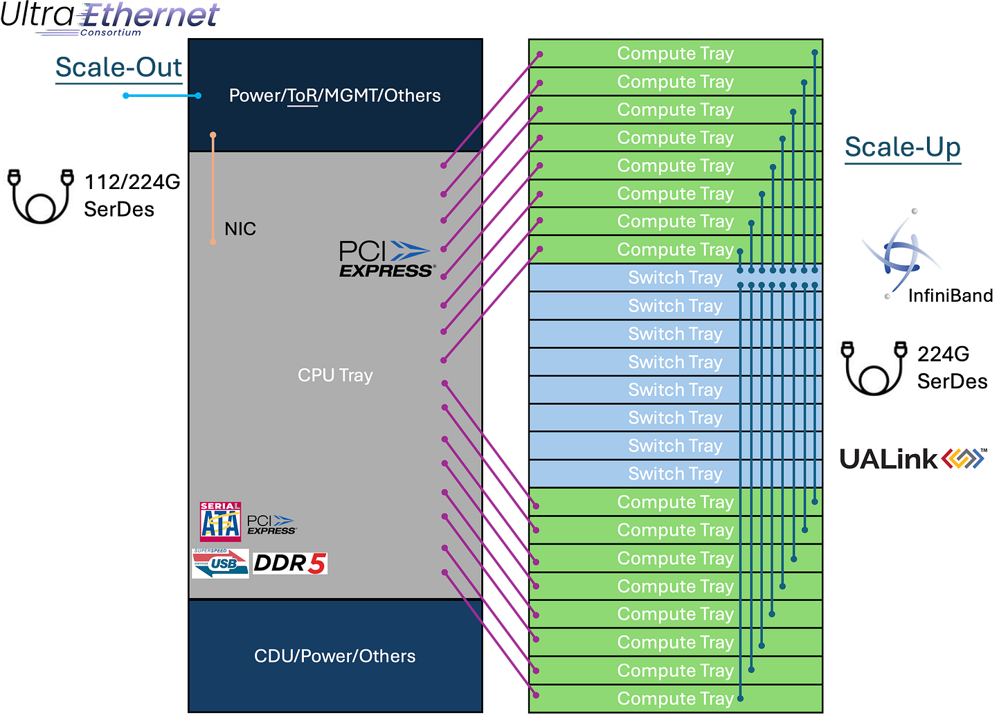 而 Ethernet 在 AI 領域的另一個潛在對手,正是由 Intel、AMD、Microsoft、Meta 等巨頭組成的 UALink(Ultra Accelerator Link)聯盟。