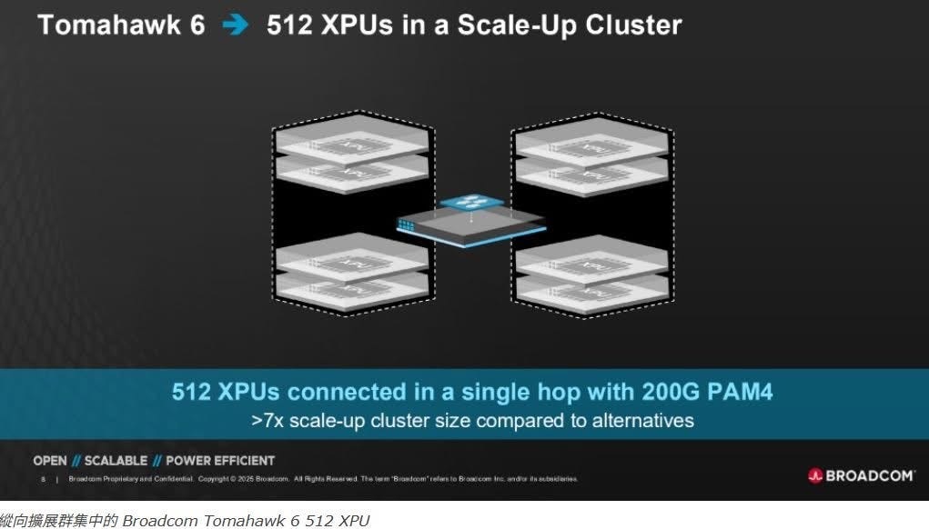 目前 UALink 聯盟還在早期發展階段,標準尚未完全確立。如果 Ethernet 能在此刻憑藉 Tomahawk 6 這樣的武器,快速解決大規模部署下的效能與延遲難題,建立起穩固的市場地位,那麼 UALink 未來的推廣之路恐怕會遇到不小的阻礙。